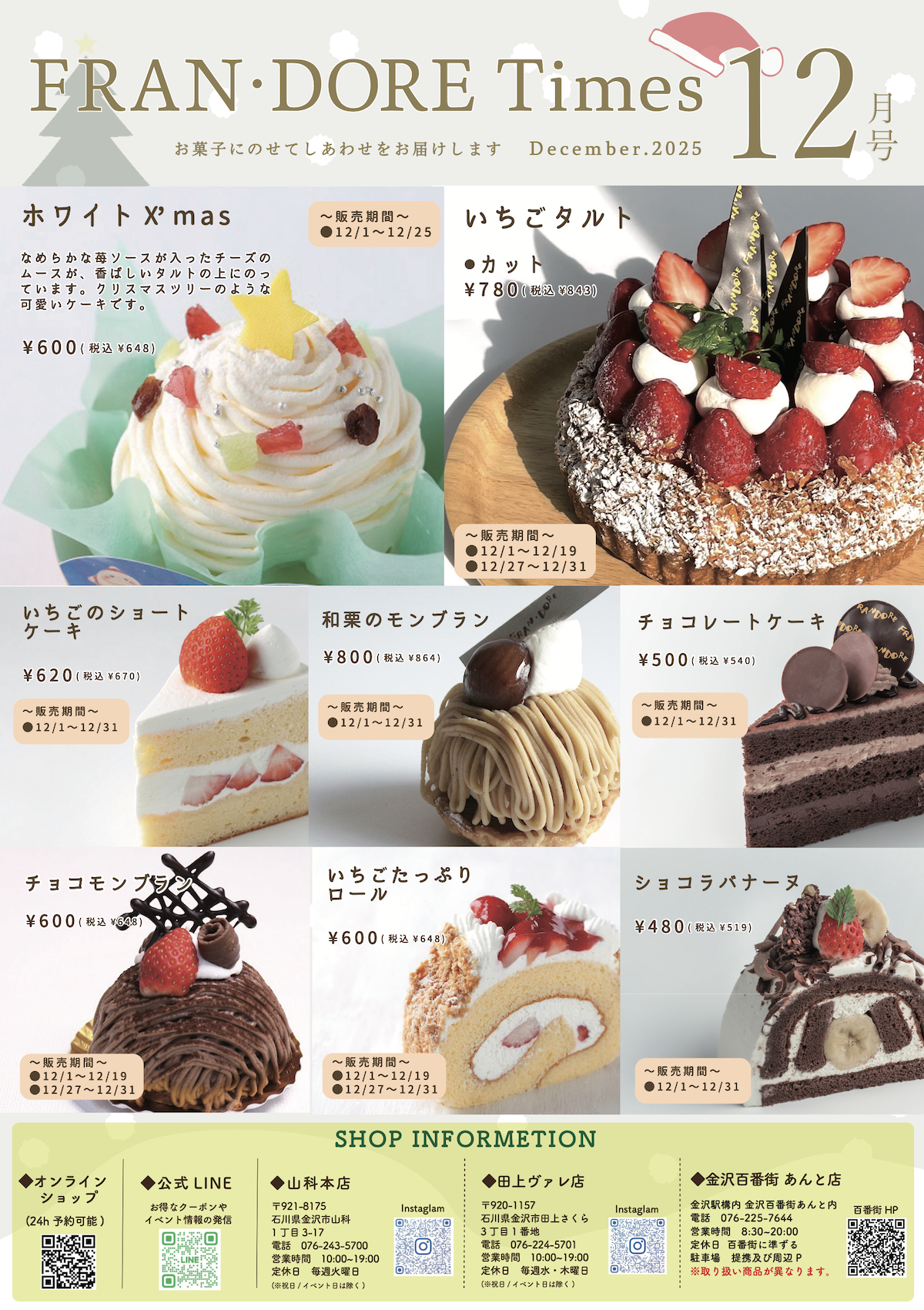 只今、「Happy Cristmas 2025」のカタログを店頭にてお渡ししております。