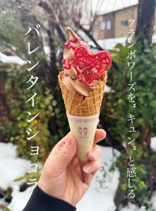 今月のソフトクリームはラズベリー香る「バレンタインショコラ」と「ショコラ」の2種類