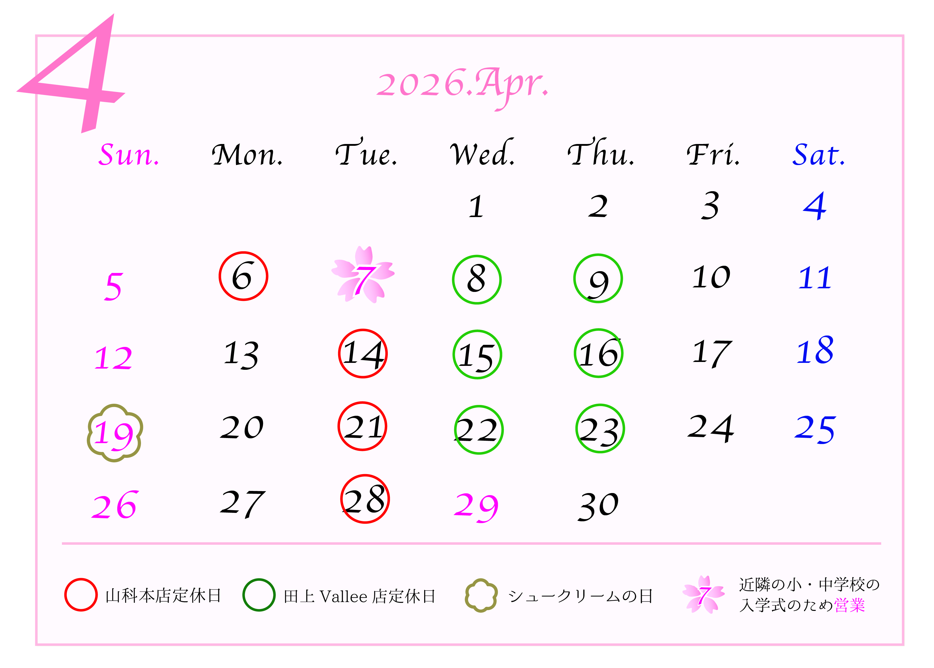 | 日 | 月 | 火 | 水 | 木 | 金 | 土 |