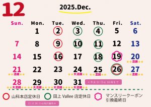 只今、「Happy Cristmas 2025」のカタログを店頭にてお渡ししております。